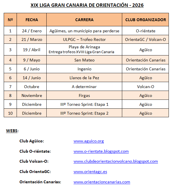Les adjuntamos cómo quedaría el calendario de la XVIII Liga de Gran Canaria de Orientación, a falta de un evento para terminar la temporada. Pronto publicaremos la clasificación hasta la fecha y los detalles del «II Trofeo Sprint de Navidad» con el que cerraremos la liga.