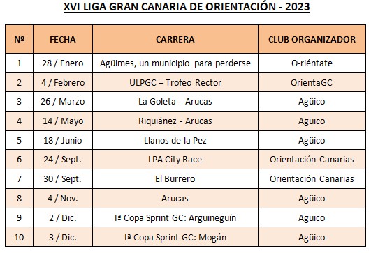 Además, publicamos el calendario de la Liga de Gran Canaria de Orientación 2023 actualizado con los últimos eventos / carreras.